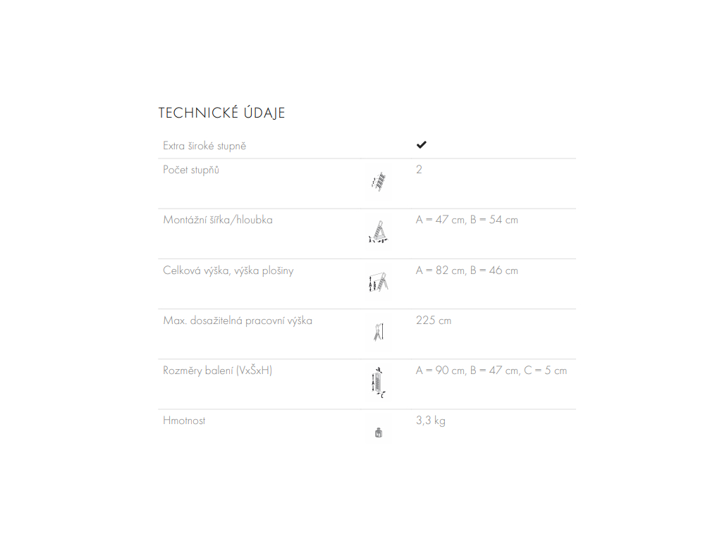 Maximální dosažitelná bezpečná pracovní výška: 225 cm