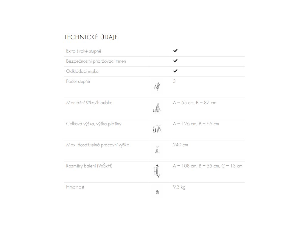 Maximální dosažitelná bezpečná pracovní výška: 240 cm