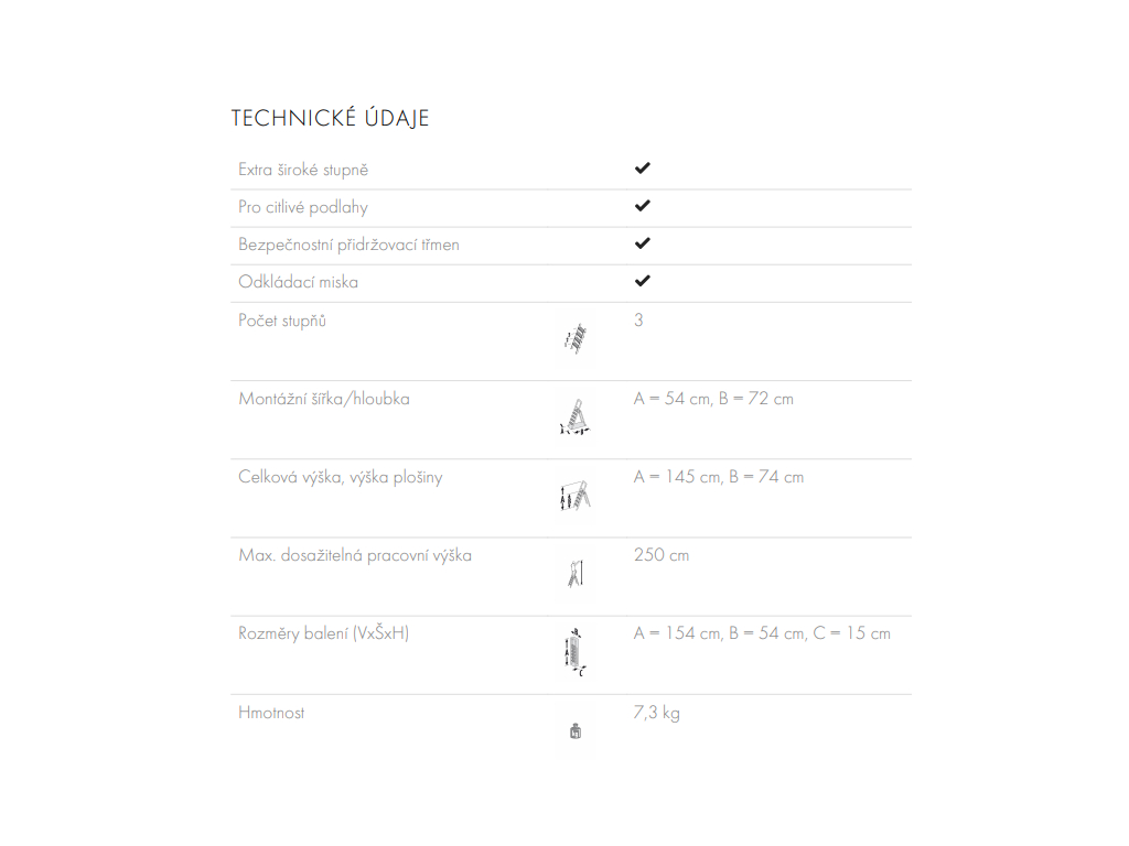 Maximální dosažitelná bezpečná pracovní výška: 250 cm