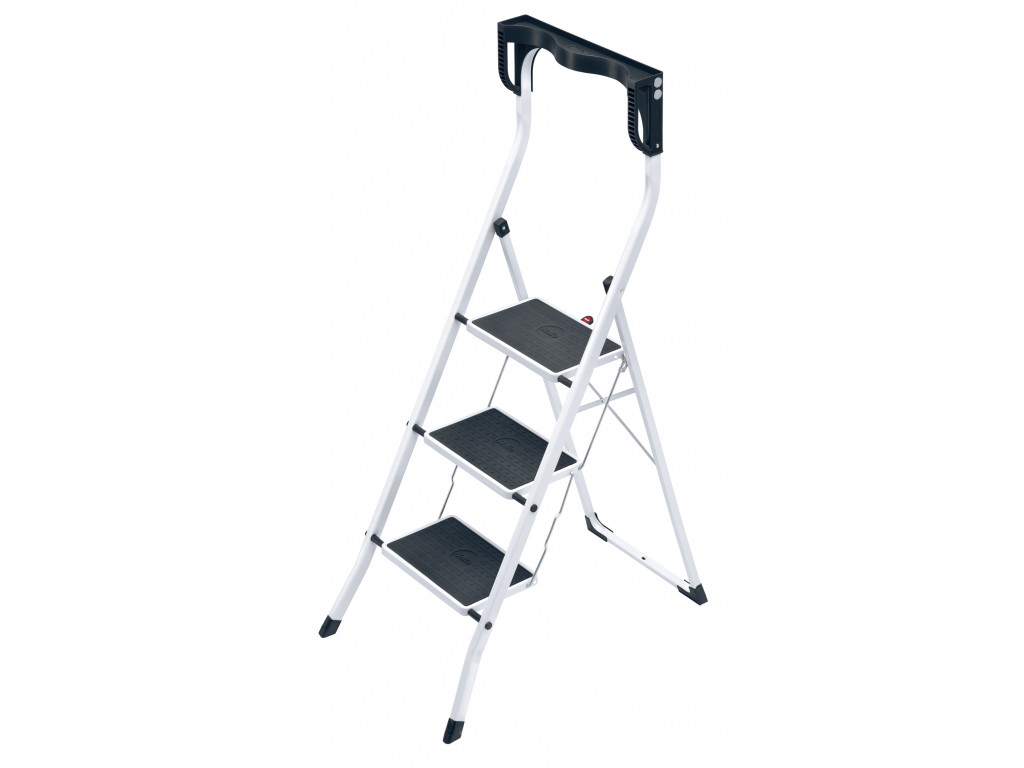 Ergonomické skládací schůdky s vysokým bezpečnostním madlem (63 cm) a praktickou odkládací miskou.